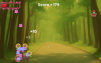- 흩날리는 꽃잎을 모아 사슴의 뿔과 몸을 아름답게 꾸며주세요.